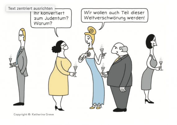 Darf man über Antisemitismus lachen? Myriam Halberstam ist der Meinung: Ja, man darf. Cartoons erfassen überspitzt die Situationen, in denen Jüdinnen und Juden immer wieder mit den absurdesten Fragen und Nebensätzen konfrontiert werden. Dabei setzt die Ausstellung ganz auf Humor und einen leichten Zugang zum Thema.